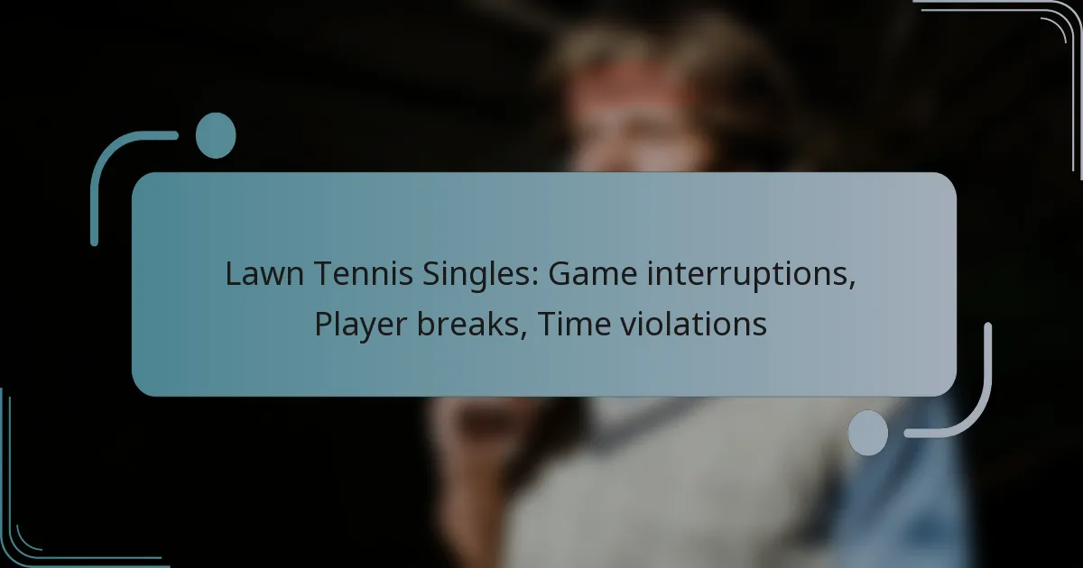In lawn tennis singles, game interruptions can significantly impact the match’s rhythm, stemming from player breaks, weather changes, or external factors. Player breaks are regulated to ensure that they do not disrupt the game’s flow, while time violations occur when players exceed the allotted time between points or games, potentially leading to penalties. Understanding these elements is crucial for both players and spectators to appreciate the dynamics of the game.